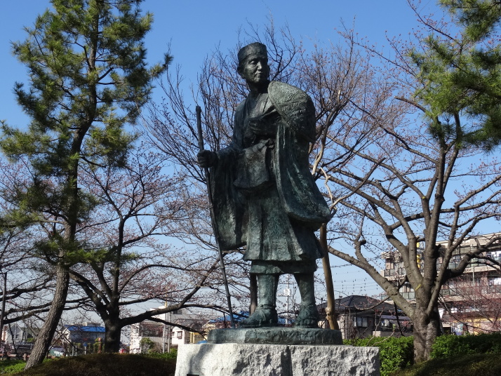 深川の採茶庵から旅立ちです。後輩の邑口杉風が深川から千住まで見送ってくれるという事で千住までは同行二人。採茶庵を出発して直ぐ芭蕉稲荷神社(芭蕉庵跡)で旅の安全を祈願していると、やはり芭蕉に興味のありそうな見知らぬ方から「お気をつけて」と激励を受けました。隅田川沿いを進んでいくと、散歩している保育園児からも熱い視線?。先ずは南千住駅前の芭蕉像へ。今年3月4日に建立されたばかりで、以前からあった「芭蕉は船で隅田川を北上し千住の地で陸に上がったが、北岸(北千住)なのか対岸(南千住)なのか」の論争が更に激しくなりそうです。素盞雄神社には「行く春や鳥啼き魚の目は泪」の矢立初めの句碑があり、旅立ちに相応しい御朱印をもらいました。 14時頃、毛長川を渡り東京都から埼玉県に入ります。草加宿に入ると、自転車に乗った小父さんから「奥の細道か?今日は3月27日だからな」と声を掛けられました。その先にある草加宿神明庵で休憩していると、この小父さんが再度来て草加煎餅をお接待してくれました。まるでお四国にいるような感じでした。草加松原には、曾良や芭蕉の像、矢立橋や百代橋があり、その間が松並木で綺麗に整備されています。2014年3月に「おくのほそ道の風景地 草加松原」として国指定の名勝になっています。蒲生の一里塚に来ると既に15時半を回っていました。先を急ぎましたが越谷で17時近くになってしまったので、ここから電車に切り替え春日部に行きました。 夜は宿の近くの粕壁うまいもの横丁にある「万や」へ。明日からの馬力を付けようと馬刺しなど注文して埼玉の銘酒神亀を楽しみました。 |