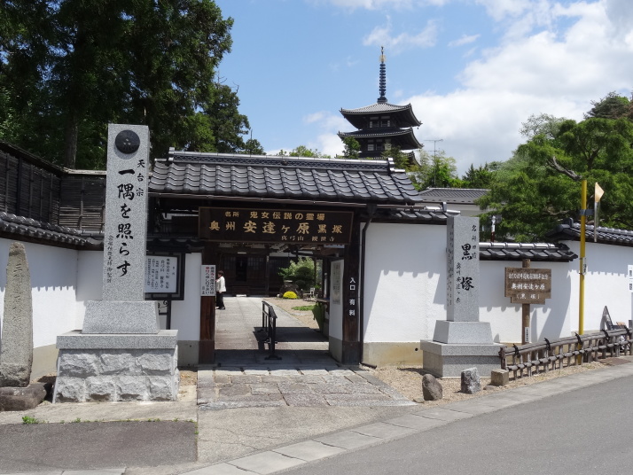 今日は距離が長いので7時前に出発、左手に安達太良山を見ながらの一日でした。 ここから安達が原に向おうと思ったら、智恵子の生家の看板があったので、ついつい誘われて行きました。智恵子は明治19年、二本松の酒造業斉藤(のち長沼)今朝吉の長女として生まれ、日本女子大を卒業した後は画家の道を選ぶ。大正3年に高村光太郎と結婚する一方、昭和4年に実家の長沼家が破産、一家離散となる。昭和6年に統合失調症の最初の兆候が現れ、以後病状は進行、昭和13年、53歳で死亡。昭和16年に光太郎が詩集「智恵子抄」を刊行。智恵子記念館には智恵子の作品が展示され、特に亡くなる1年前から始めた紙絵の数々が印象的でした。 ちょっと遠回りをして、謡曲「安達ケ原」の舞台の黒塚へ。京都に「岩手」という乳母がいて姫を手塩にかけて育てていた。その姫が重い病気にかかり、「妊婦の生き肝を飲ませれば治る」というので岩手は生き肝を求めて旅に出、いつしか安達ケ原の岩屋まで来た。ここに旅の若夫婦(妊婦)が宿を求めてきた。その夜ふけ、岩手は包丁で妊婦の生き肝をとったが、これが我が子だと分り、あまりの驚きに気が狂い鬼と化した。 後は福島まで歩くのみ、でもまだ残りは17q以上も。途中、八丁目宿の金水晶酒造を経て更にどんどん北へ進みます。福島駅近くになった所でミス、115号線を横断しようと地下道に入った時どういう訳か直進を左折してしまい500m位進んで気が付き戻りました。福島到着は17時40分、結局今日は11時間近くで40.5qを歩き、歩数も6万歩を超えました。これは新記録、お蔭で肉刺も成長していました。 夕食は大衆居酒屋で、今日は喜多方産の夢心酒造「奈良萬」、大川酒造店「弥右衛門」を頂きました。 |