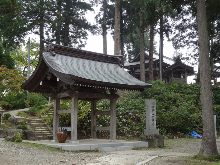 | 昨日の終点芦沢まで電車で戻って出発です。名木沢宿を過ぎると猿羽根(さばね)峠への道に入ります。暫く山道を進むと、日本三大地蔵の一つ猿羽根山地蔵尊に着きました。芭蕉句碑『月の香も南に近し最上川』があります。これはおくのほそ道には載っていませんが、芭蕉が新庄の風流・盛信に招かれた時に猿羽根峠の眼下を流れる最上川に着想を得て詠んだ発句で「曽良俳諧書留」に入っています。又、猿羽根峠と芭蕉の関係の説明板もあり、偶々お堂の補修工事をしていた作業員の人達と暫し奥の細道談義をしました。