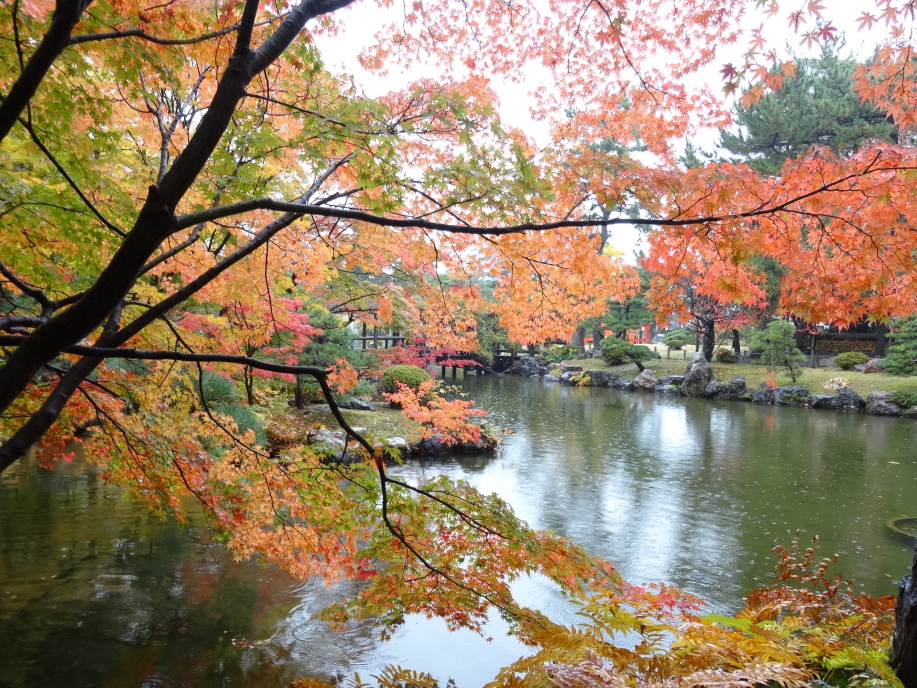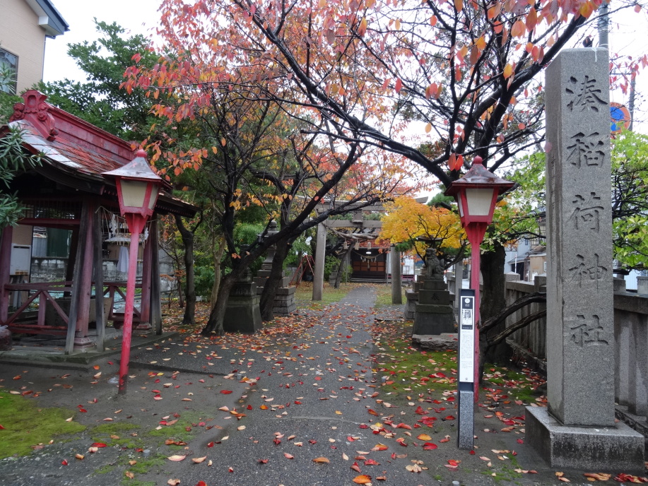 | 芭蕉が新潟に上陸した沼垂地区を見てから、新潟在住の大関曽良女(学生時代からの友人)とホテルオークラで待ち合せ。近くの曽良女邸に行き、万代橋・信濃川の眺望を楽しんだ後に出発、芭蕉ゆかりの蓑塚がある善導寺、宗現寺など寺町を歩きます。そして新潟を代表する古町通りを散策、角栄さんがニ百畳敷大広間で豪快に遊んだという鍋茶屋や会津八一生誕の地、水島新司にちなんだドカベン・野球狂の歌シリーズのブロンズ像などを見ながら船江大神宮へ。芭蕉句碑「海に降る雨や恋しきうき身宿」があります。 新潟県政記念館で議長の雰囲気を味わい、白山神社の紅葉を見て一旦曽良女と別れました。 一人になった後は酒蔵巡りをしながら赤塚を目指します。広大な新潟大学を通って内野地区で3つの酒蔵、更に木山地区で1つの酒蔵を見て佐潟へ。佐潟には芭蕉句碑「あかあかと日はつれなくも秋の風」がありました。越後赤塚から電車で新潟駅に戻ります。 |