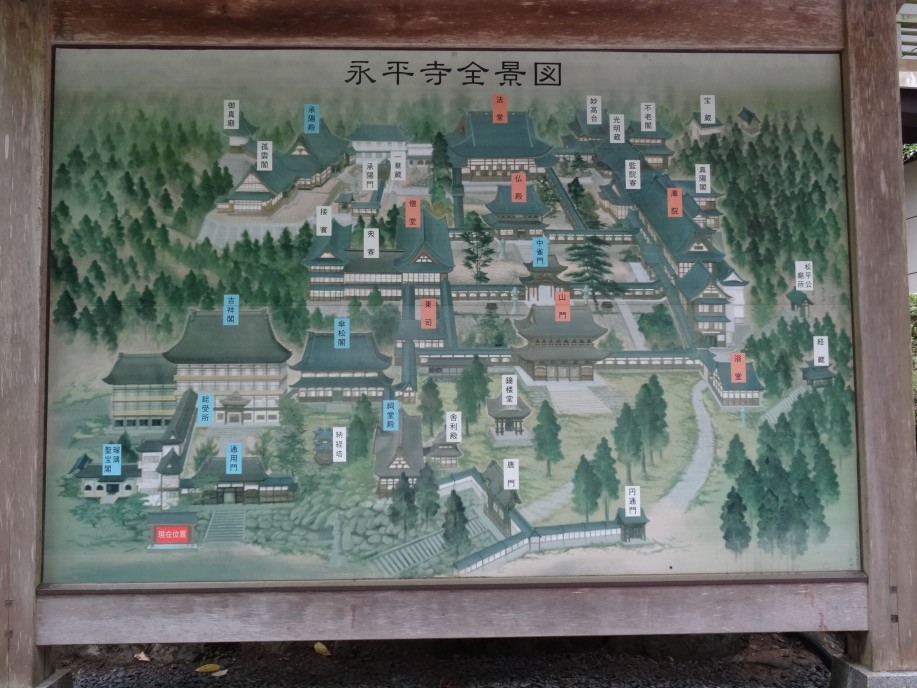 朝一番で永平寺を参拝、8時に入場しましたが、まだ掃除が終わっていないと30分程待たされました。毎日3時半に起床して4時前から座禅を始め、朝の勤行、作務と続きます。永平寺では何事も修行で、寝ること、食べること、トイレに行くこと、掃除することも修行、従って待つことも当然修行の一つです。 昨日も越えた越坂峠を過ぎ、昼食を摂って、13時過ぎに福井県庁(福井城址)へ。福井の地名の由来になっている福の井は今でも残っていますが、隣の控天守台跡は昭和23年の福井地震による崩壊の跡を今に伝えています。北ノ庄城址は現在は柴田神社、柴田勝家とお市の方・三姉妹を撮ろうとすると勝家が後姿に。 酒蔵2軒を回った後は南下、福武線赤十字前駅で小休止して玉江の橋へ。芭蕉がここで「月見せよ玉江の芦を刈らぬ先」の句を詠んで以来、歌枕のみならず俳句にもしばしばその名が出るようになったと案内碑に記されています。この頃から雨が降り始めました。 夕食はホテルから10分程の「三婆場」。三姉妹が切り盛りする店で三婆場、雰囲気も良く、楽しい会話で三杯頂きました。 |