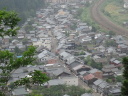 オヤジさんが昨日の朝7時頃、家の前の杉の木の上7,8mに熊がいたと言い出しました。犬が吠えたが俊敏な動きで逃げたそうです。クワバラクワバラ。これで犬が放し飼いされている訳が分りました。熊が出たら杖は捨てる、下だけでなく上にも注意しながら歩くなど注意をされて峠を下りました。