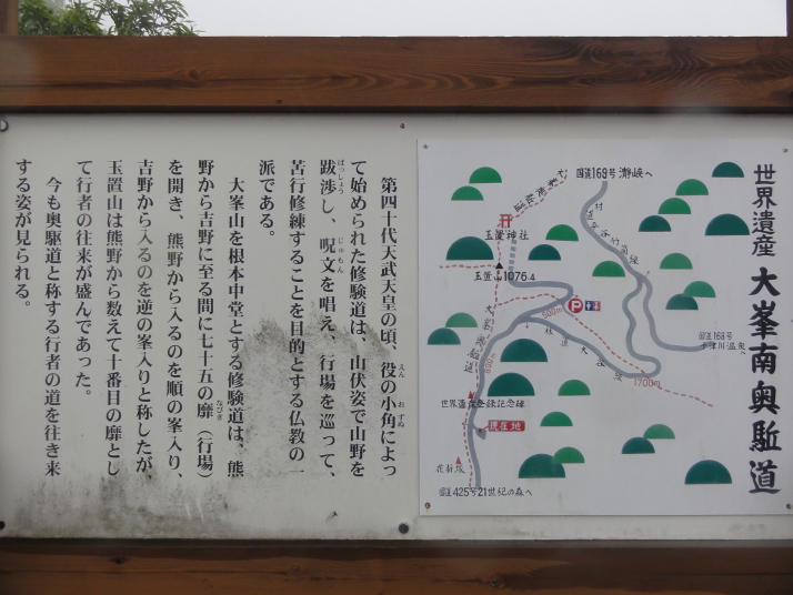 十津川村は奈良県最南部に位置し、日本一広い村(面積は奈良県の五分の一)、日本一長い路線バス(八木~新宮まで6時間半)、日本一長い谷瀬の吊橋(長さ297.7m、高さ54m)で知られるところ。又、南北朝時代の南朝ゆかりの地が多くあったり、幕末坂本龍馬暗殺では刺客が十津川郷士を名乗ったり、尊皇攘夷の過激派集団天誅組に多くの十津川郷士が参加したりと歴史の舞台にも多く顔を出しています。こんなに山深い所にどうしてと思いますが、古くは神武天皇の東征の際に吉野の山中を先導した「やたがらす」が祖先であるともいわれ、これが独特の勤皇精神を育んだのでしょうか。 ここからバス停のある折立まで下って行きます。先ずは玉置山展望台まで大峯奥駈道を歩きます。杉木立の歩き易い道が続きます。かつえ坂にある大峯奥駈道の石碑を経て11時に展望台に到着しますが雨で全く眺望が開けません。少し進んで折立に下りる道に入った途端、荒れた道に様変わりです。人が歩いた形跡が殆ど無く、荒れ放題といった感じ。特に先週の台風の影響か、木が多く倒れ、道がえぐれている箇所もあります。小枝が足に絡みついたり、滑ったりと大変です。朝のタクシーの運転手が「2ヶ月前、玉置山を登山していた夫婦が道に迷い、舗装道路に無理やり出ようとして滑落し、夫は頭を強く打って亡くなった。ドクターヘリも来て大変だった」と話していたが、その二の舞だけにはならないよう「ゆっくり・ゆっくり」「慎重・慎重」と声を出しながら進みます。何とか下が見える場所に来ましたが、その後も石だらけの急坂、最後まで気の抜けない道でした。やっとのことで車道に出ると、何と南都銀行十津川支店の脇。南都銀行恐るべしです。 折立から十津川村役場までバスで行って近くの公衆温泉「滝の湯」へ。ゆっくと温泉に入って生き返り、蕎麦とビールで遅めの昼食。更に十津川村民俗資料館を見学してから五條まで3時間弱のバス移動。途中、谷瀬の吊橋付近の休憩所で小休止。ここで八木から新宮行きの最終バスとすれ違いますが、乗客はゼロ。6時間半の路線バスで乗客ゼロは大変です。山と川の素晴らしい景色を見ながら、19時少し前に五條に到着しました。新宿行き夜行バスまで2時間ほどあるので時間調整しようと店を探しますが全くありません。駅員さんに聞いても牛丼屋は判るが居酒屋は無いよと。やっとのことでお好み焼き屋を見つけて時間を潰し、その後、初めての夜行バスに乗って帰宅の途につきました。 |