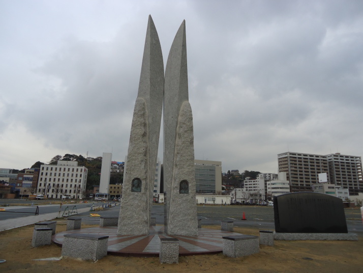 青春交響の塔:高杉晋作と坂本龍馬の友情を二本の石柱で表現したモニュメント