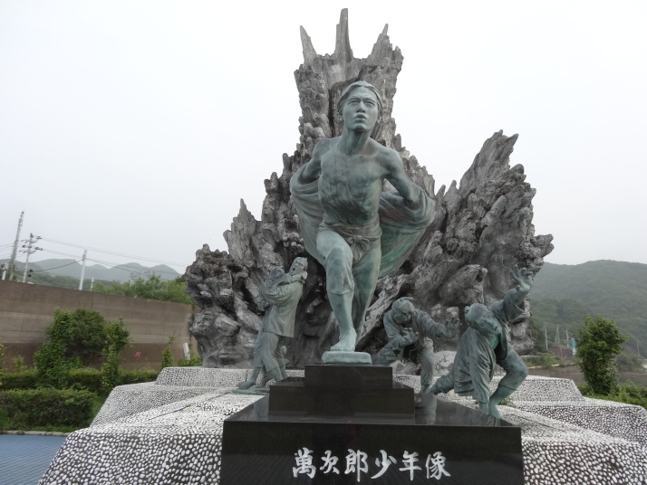 | 天気予報は曇りから晴れということで安心して出発。先ず、万次郎記念館の萬次郎少年像を見て先へ、見応えのある落窪海岸や竜串が続きます。この辺りは化石漣痕の海岸で、波や水流の影響で水中の堆積物の表面につくられた凸凹がそのまま地層面に残されたもの、昭和21年の南海地震により隆起したといいます。竜串の足摺海底館に入りましたが最近の天候の影響で海は濁っていて期待していたようには見えませんでした。