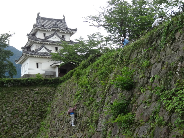小雨が降る中を出発、松尾トンネル入り口を左に折れて遍路道に入ります。直ぐに遍路小屋があり、ここで休憩。中は意外ときれいでトイレットペーパーやティッシュの予備がありました。外には簡易式トイレもあり野宿遍路には格好の場所です。遍路ノートにも横浜の女性(年齢不詳)が、この遍路小屋に泊まったと記されてありました。遍路道を進み標高220mの松尾峠を越えて採石場を通過して56号線に合流しました。 その後、ローソンで小休止(喫茶)し、11時過ぎに番外馬目木大師へ。更に進んで11時40分に別格6番龍光院に到着しました。龍光院は宇和島城の鬼門に当たることから文殊菩薩を祀って伊達家の祈願所とした寺、111段の石段を上って参拝します。108段は人間の持つ煩悩、後の3段は3世(過去・現在・未来)を示すと説明されていました。12時前に宇和島駅に到着して今回の区切り打ちを終了としました。 この後は、清メ氏推薦の丸水(がんすい)で宇和島名物の鯛めしで昼食、伊達家の庭園「天赦園」を散策し、宇和島城を上り立ち門から登り見学しました。石垣の草取りをしている様子など普段見られない光景も見ました。天守から見た宇和湾は穏やかでした。 今回の区切り打ちは、早目の梅雨入りで後半は雨に降られ、スマートフォンが操作不良になるというトラブルもありましたが、体調は良く歩きも順調、多くの楽しい出会いもあり、総じて満足のいく遍路旅でした。