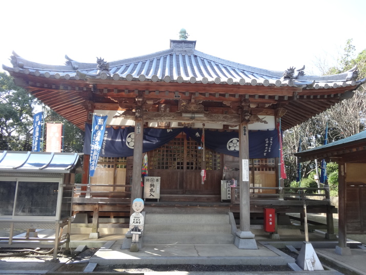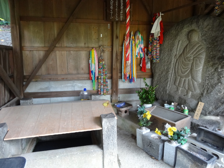| 今回の区切り打ちの最終日。朝から小雨模様、瓦の町菊間町を歩いて番外遍照院へ。流石に瓦の町の寺らしく、山門の脇を固めるのは金剛力士像ではなく、阿形・吽形の鬼瓦です。更に太陽石油菊間製油所の大きな工場を過ぎると番外青木地蔵。地蔵堂の前には立派な遍路小屋、昨日泊まったという年齢少し上のお遍路が水道で洗濯をしていました。